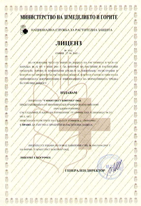 • Гарант Пест Контрол ЕООД е лицензирана ДДД фирма