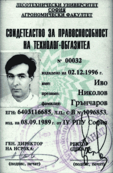 » Свидетелство за правоспособност на технолог обгазител